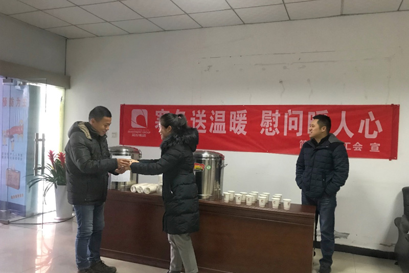 工会工作人员还为食堂工作人员、礼仪、保安等后勤服务人员,送去保暖内衣,感谢他们默默无闻地辛勤付出。正是后勤服务人员坚守岗位、辛勤的付出,才有了热乎乎、香喷喷的饭菜和温馨、舒适、安全的办公环境。同时,集团公司工会在公司一楼大厅提供红糖姜茶,为员工驱散冬日的寒意。一杯杯热乎乎的姜汤,寄托着集团公司对职工们炙热的关怀,和对职工们辛勤付出地感谢。