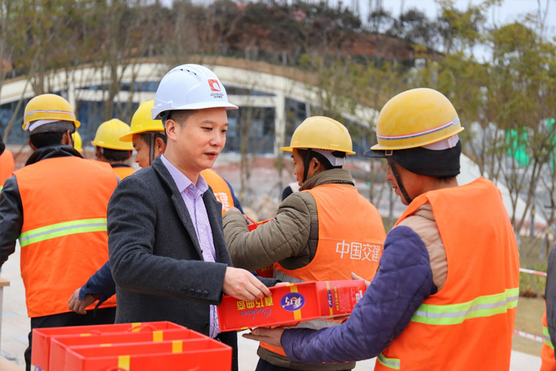 1月14日起,必赢272net入口集团工会开展以“寒冬送温暖 慰问暖人心”为主题的慰问活动,公司总经理张成毅、副总经理罗洋分别带队慰问简州新城人才公园、标准厂房B项目现场,为坚守在建设一线的施工人员送去姜茶、饼干等慰问品;特别叮嘱大家在户外作业,尤其是高处作业、带水作业时一定要做好保暖、安全措施,防止因低温导致手脚僵硬造成安全事故。